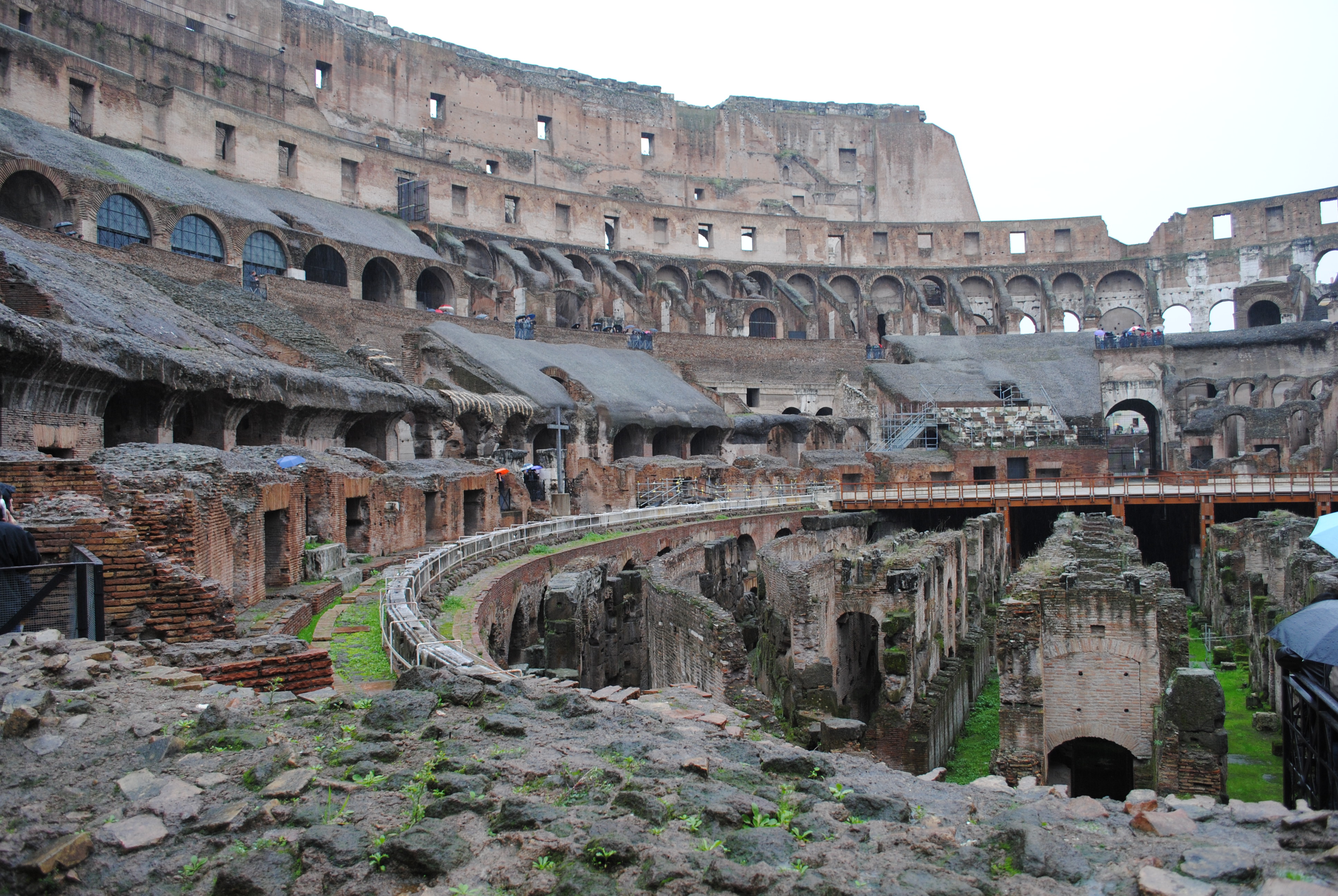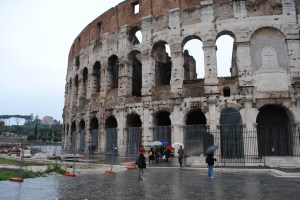 We got off at the Roman Coliseum. Gabriel was asking a lot of good questions about the early Christians and how they were persecuted there. We bought a tour that was worth it. This tour took us through the Coliseum, and then it took us up the hill and we toured through the ancient city and the Roman Forum – the oldest part of Rome. For the second part of our tour we got a very good tour guide. Her name was Jill, and she was studying for her PhD in theology. Sounds like she knew the pope. Catholic. She was extremely knowledgeable and obviously had a passion for Roman / Christian history. This might have been the highlight of our day today, as we got to stick around after the tour and talk with her about Christian history in Rome. She told us where they found the apostle Paul’s body, and also the house where he was under house arrest and wrote the letters to the churches. Sounds like we have a plan tomorrow. Anyway, the constant rain was memorable today… especially as we were out in it all day. There are still many sights to see and one day left!